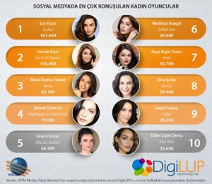 MTM Medya Takip Merkezi’nin profesyonel sosyal medya dinleme servisi Digilup verilerine göre, son hafta yerli dizilerde rol alan kadın oyuncular sıralamasında değişiklik var. Geçen hafta,